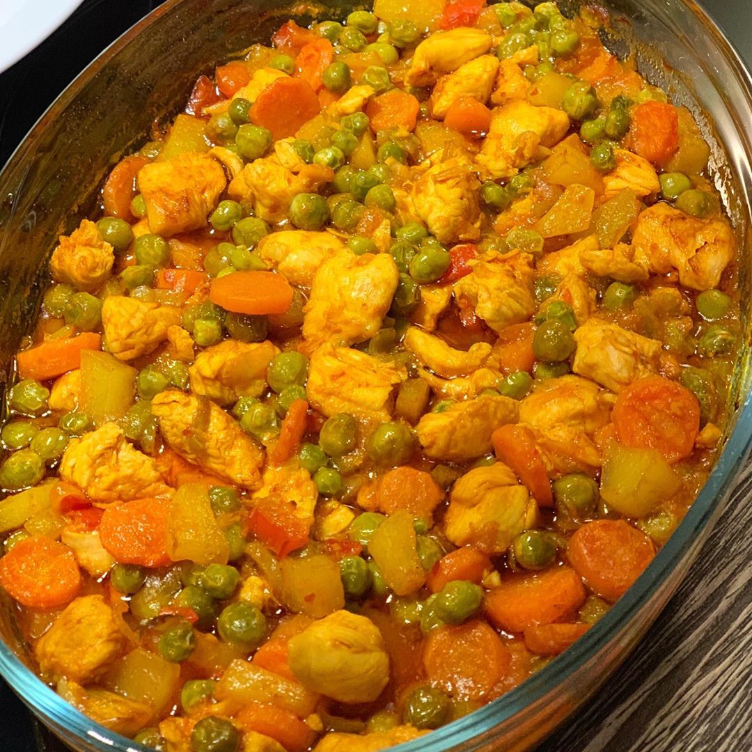 - İlk olarak tavuklar yıkanır ve kuşbaşı kesilir. Isıtılmış tavaya kuşbaşı tavuklar eklenir suyunu çekene kadar kavrulur. Ardından yemeklik doğranmış soğanlar ilave edilir ve biraz kavrulur.