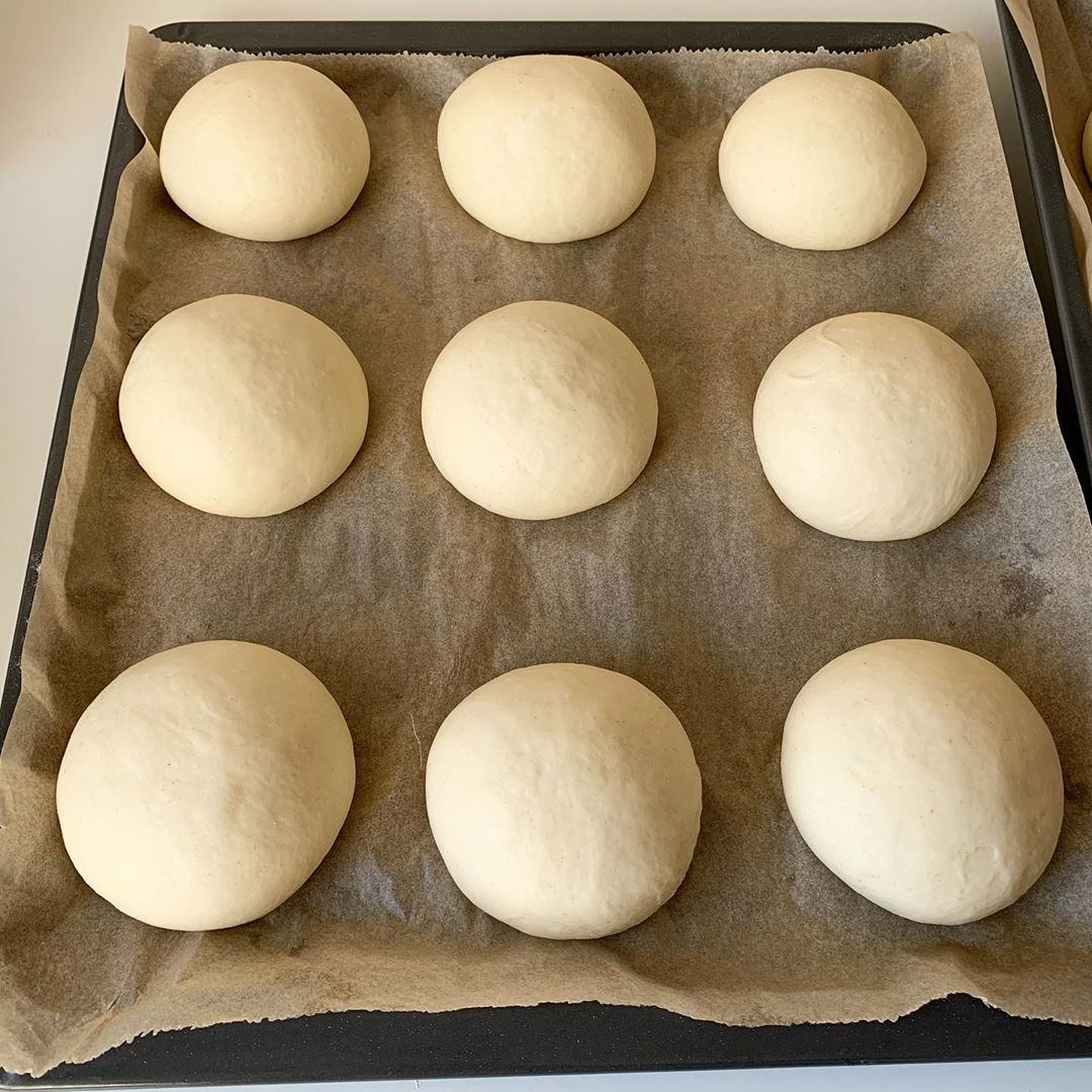 • Hamur yoğrulup 20 dakika mayalanmaya bırakılır.Ardından limon büyüklüğünde bezeler yapılır pişirme kağıdı serilmiş tepsilere aralıklı dizilip 20 dakikada tepsi mayası için bekletilir
