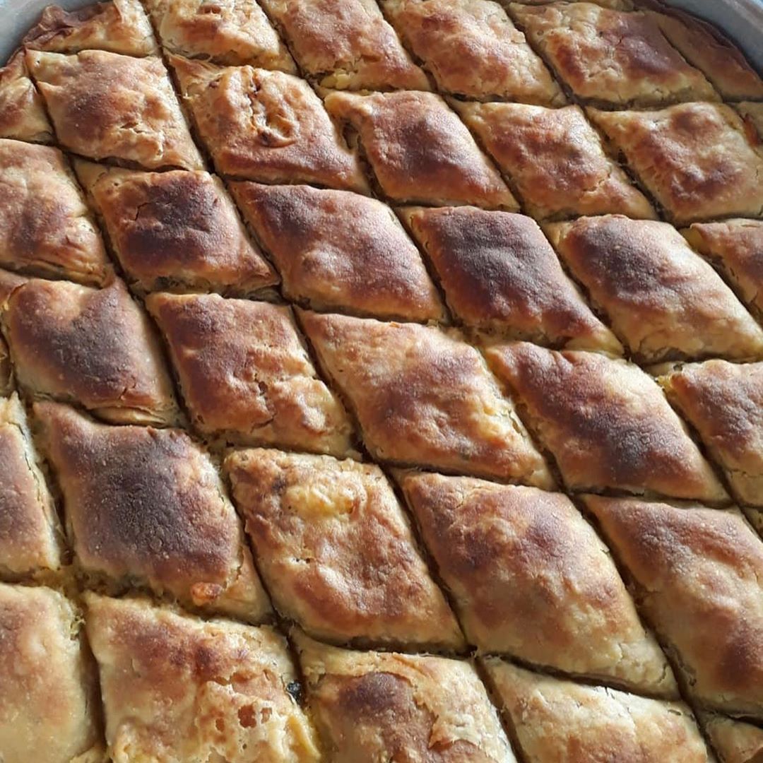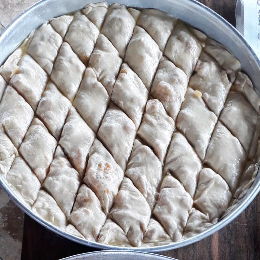 • Yufkayı seriyoruz, 4. Yufkanın üzerine tekrar patatesli harçtan koyuyoruz. Bezeler bitene kadar bir kat yağ sürüyoruz. Bir kat patatesli harçtan koyuyoruz. En üste yufkayı seriyoruz. Üzerine yağ karışımından sürüp, dilimleyip ısıtılmış fırında 200-210 derecelik fırında kızarana kadar pişiriyoruz. 40-45 dk. Afiyet olsun❤️